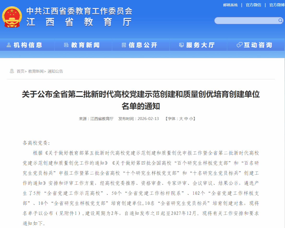 近日,中共江西省委教育工作委员会、江西省教育厅公布全省第二批新时代高校党建示范创建和质量创优培育创建单位名单,博彩-博彩投注-大发博彩平台