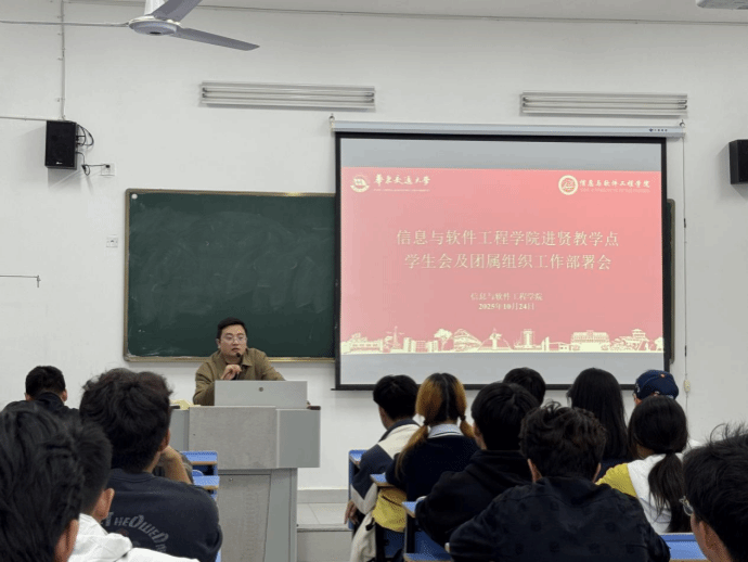 团委副书记洪亚聪、指导老师曾小康老师及进贤教学点全体25级团属学生组织负责人参会,会议由指导老师李诺言老师主持。