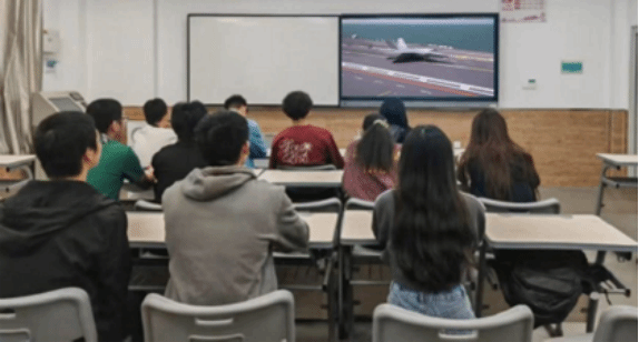 观影过程中,同学们心潮激荡。纪录片以宏大视角呈现福建舰甲板双机协同弹射的全过程,直观展现我国航母技术的跨越式突破。借助现场解说与镜头语言,同学们既深入了解了电磁弹射系统的核心原理与战略价值,也在科技与军事的交融中深化了国家认同感,真切体悟到“每一份国家进步,都凝聚着科研工作者的智慧与汗水”。